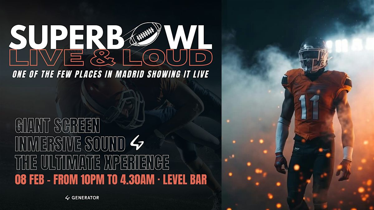 Join us at Generator Madrid for Super Bowl Night, with the bar open early to warm up, drinks flowing, comfort food on hand and the game shown live on screen until the end.