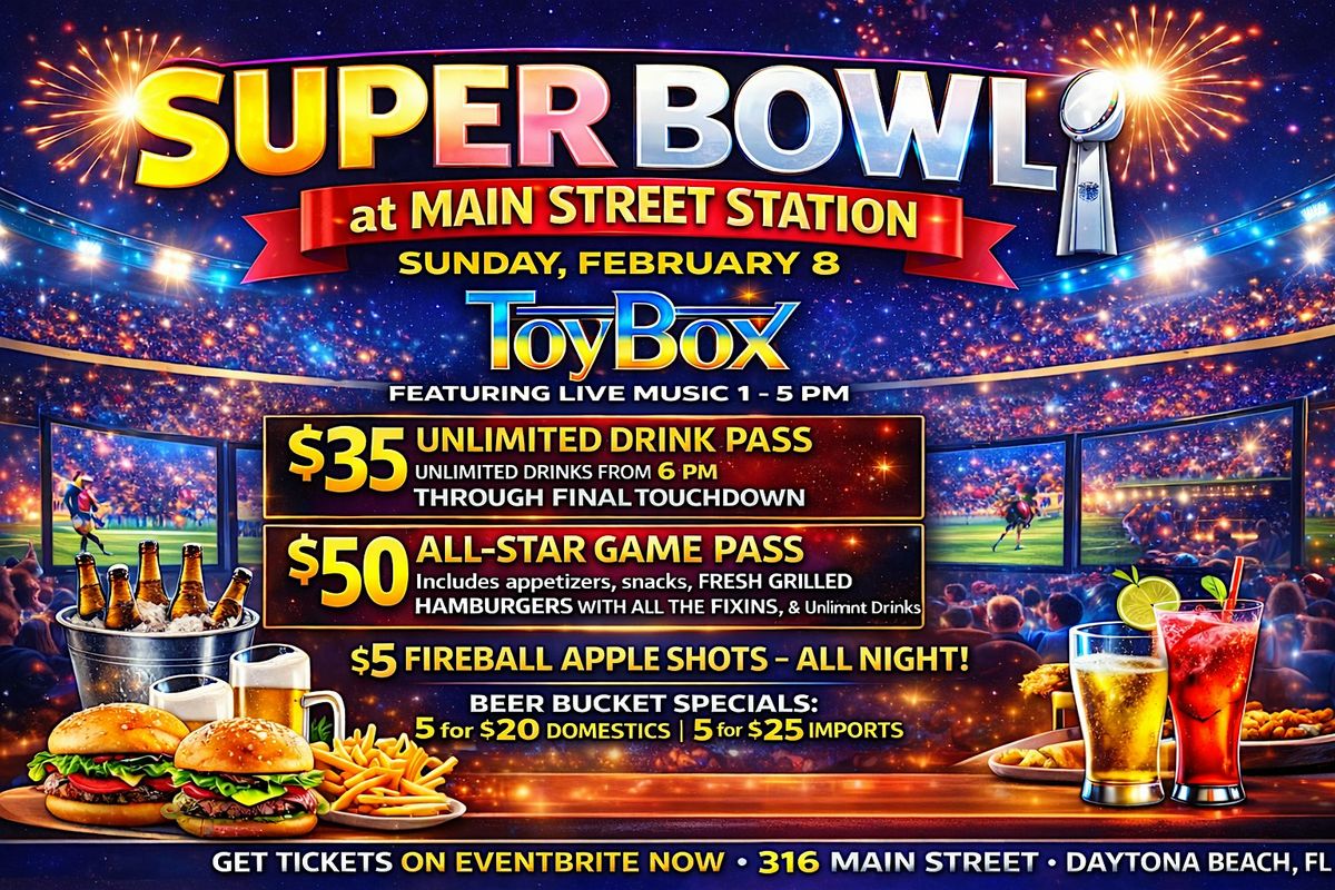 Tickets are limited. Choose your package, grab your spot, and enjoy the Super Bowl at Main Street Station.