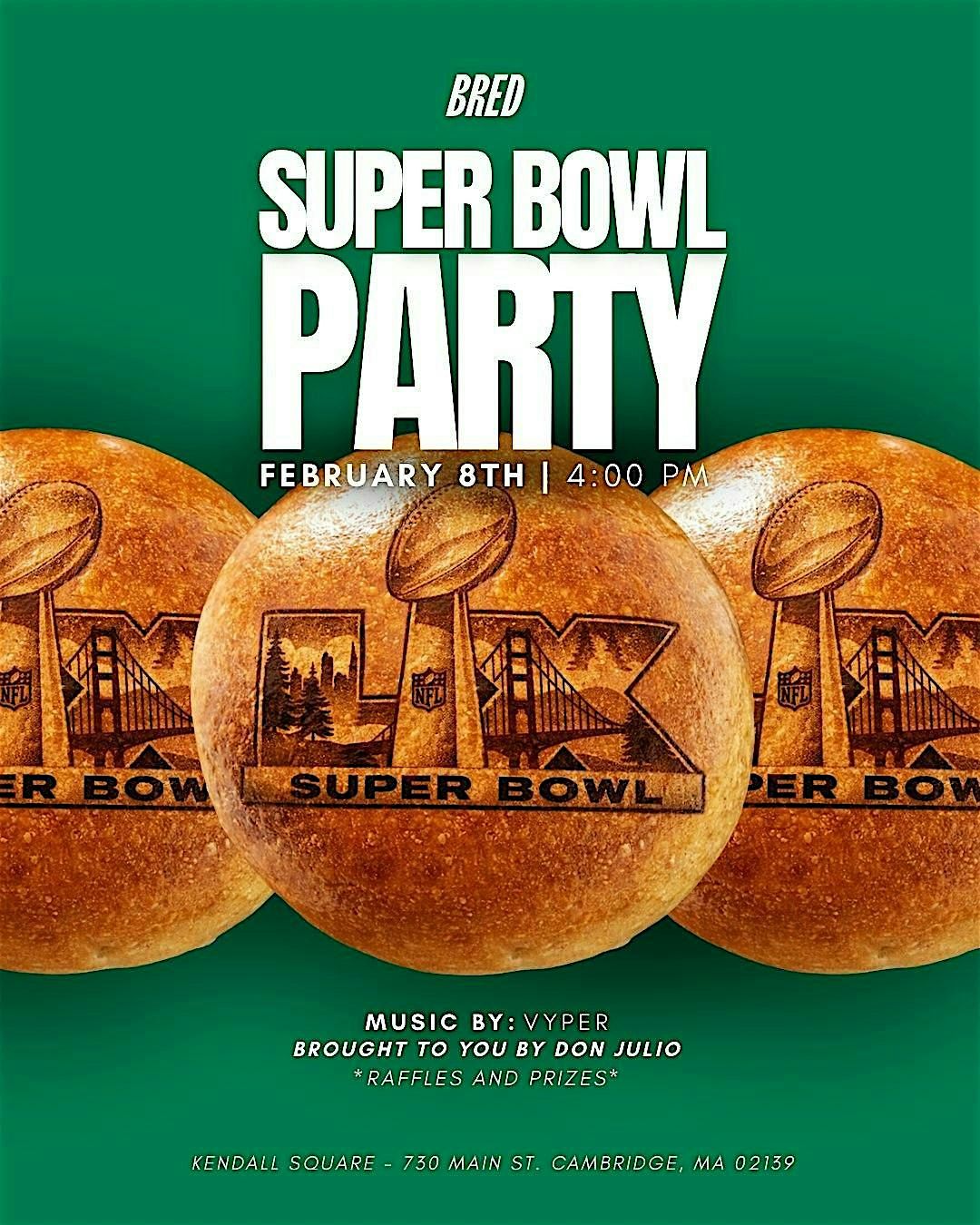 Get ready for all the vibes Super Bowl Sunday at BRED! Join us and our sponsor Don Julio. Food, drinks, raffles and prizes! Whether you're here for the game, the food, or just to chill with friends, we got you covered. Don't miss out, RSVP or reserve a seat on Open table!