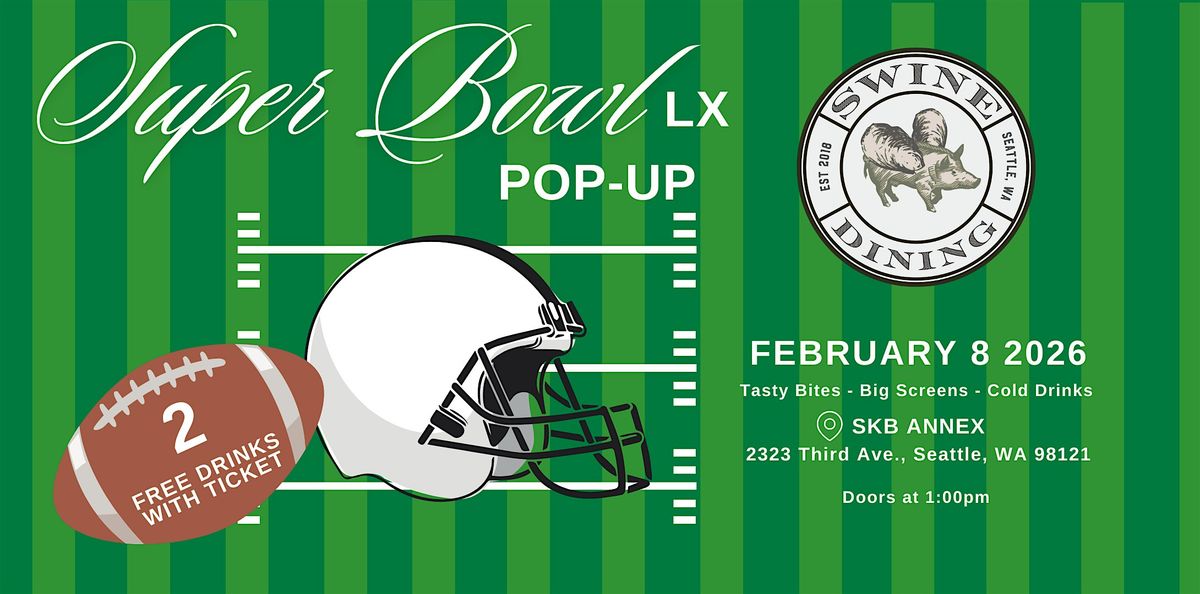 Join us as Swine Dining partners with SkB Architects to bring you an unforgettable Super Bowl pop-up in their stunning Annex space. Your $20 ticket includes two drinks, with delicious food and additional drinks available for purchase. We will have beer, wine, signature cocktails, and Jell-O shots! Stay tuned for our mouthwatering menu—coming soon!