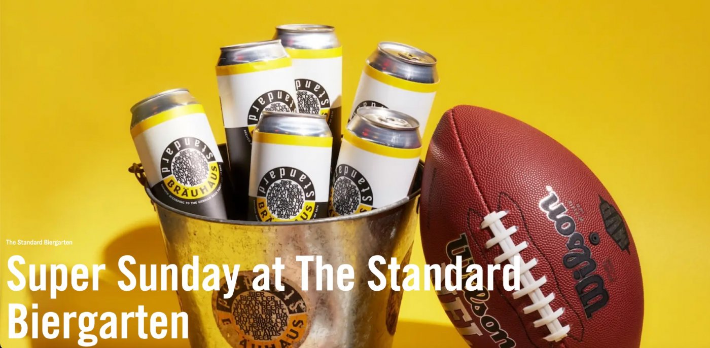 Football, brauhaus vibes, and a little Bad Bunny energy. On February 8th, Super Bowl Sunday at The Standard Biergarten will feature the game all night, complete with a special tailgate-style menu and $10 Biergarten Happy Hour with select draft beers and food specials. The space will be split into three sections: Team A, Team B, and Team Bad Bunny. Guests can choose who they’re cheering for when booking, and those on the winning team will score a round of shots. Expect Bad Bunny Jello Shots, Team Jello Shots, $5 beers, and game-day classics like Classic Chicken Wings, The MVP Cheesesteak (beef ribeye, onions, peppers, American cheese), Loaded Potato Skins, The Super Bowl Special Dog with all-beef hot dog and iconic NYC relish, and All-Star Jalapeño Poppers.