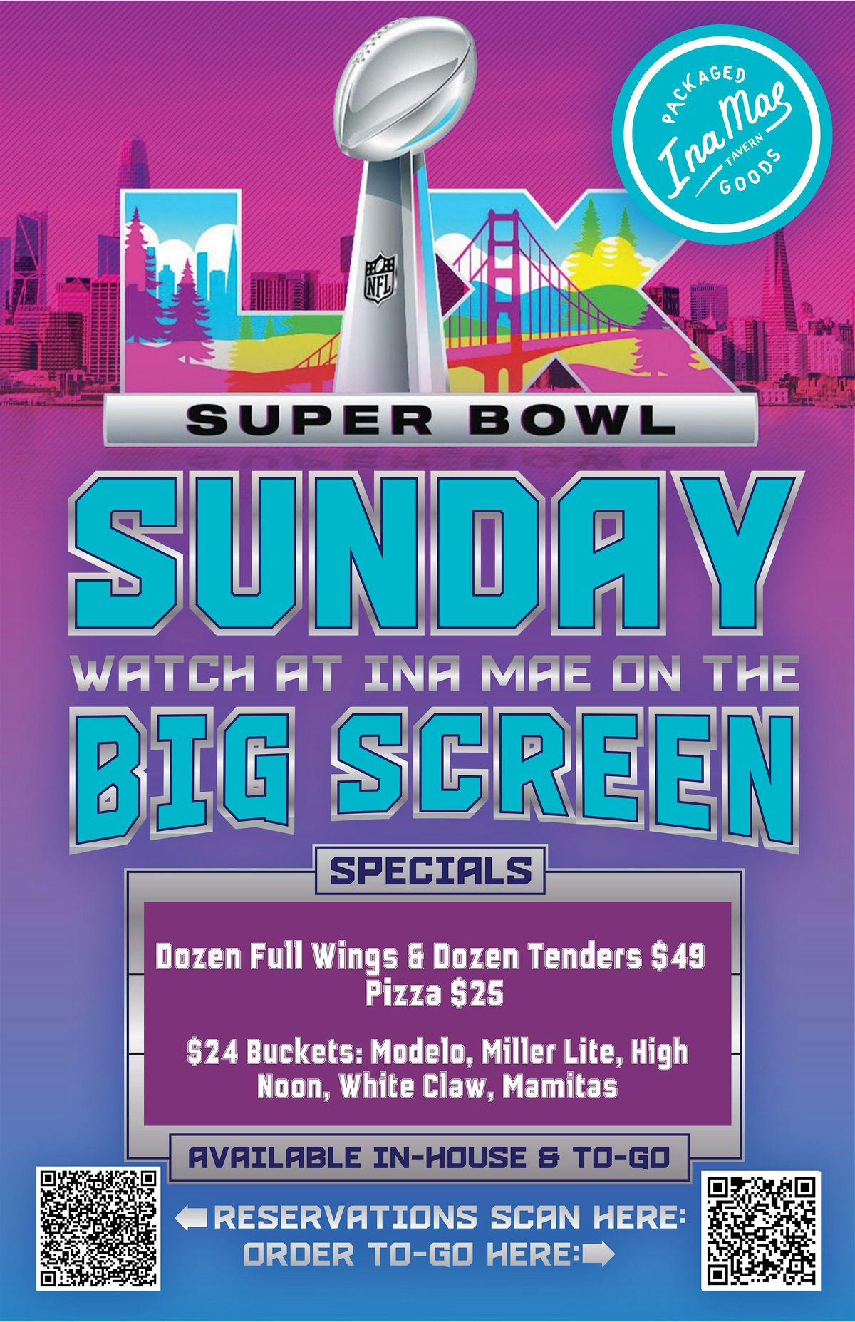 Super Bowl Sunday! Watch the Big Game on the Big Screen at Ina Mae Tavern
