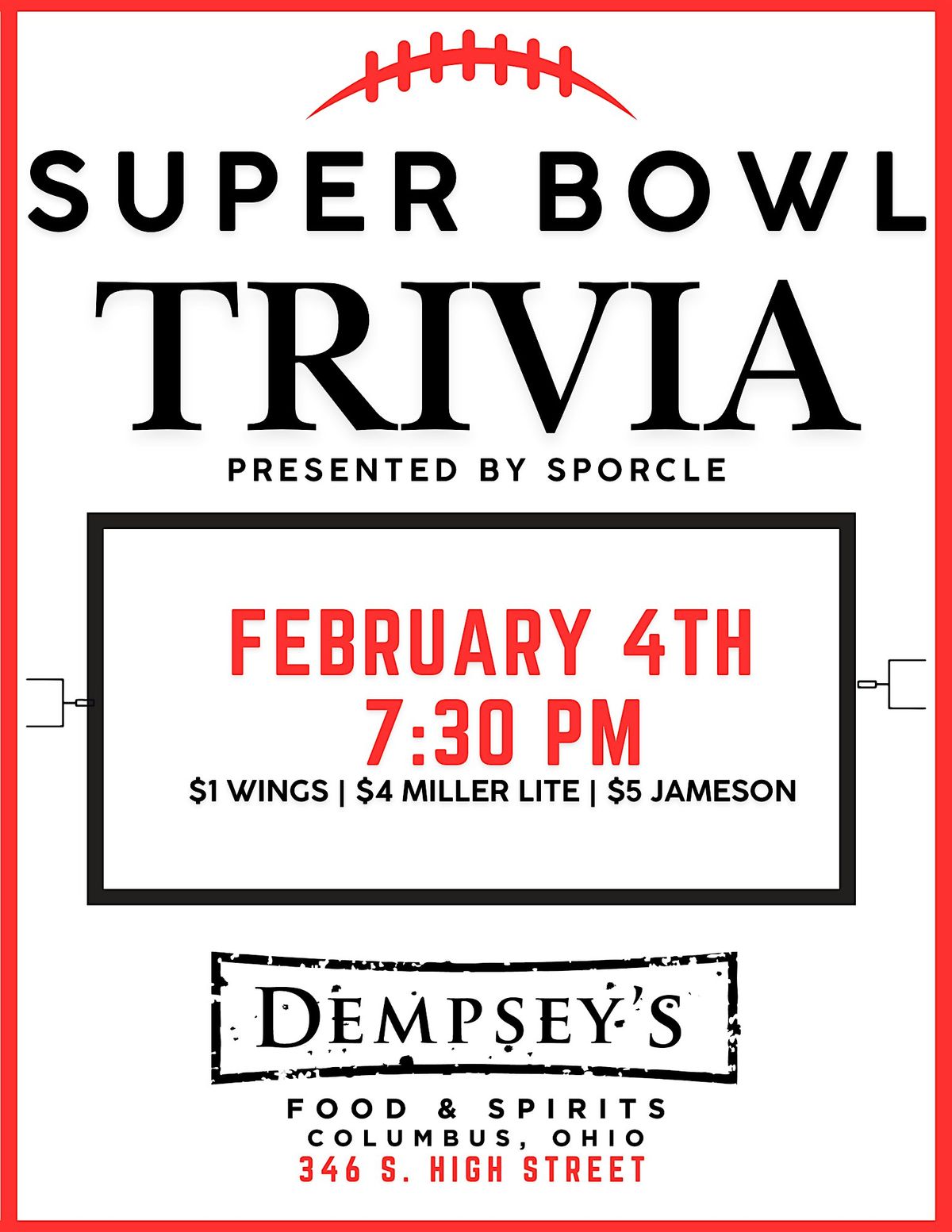 Join us in person for a fun-filled evening where football fans and trivia buffs collide! Test your knowledge on everything Super Bowl — from legendary plays to iconic commercials. Bring your friends, show off your skills, and enjoy some good laughs along the way. It’s the perfect way to gear up for game day!