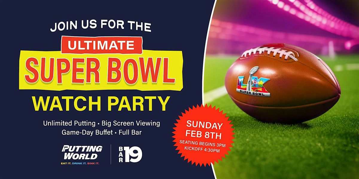 General Admission entry to watch the Super Bowl at Putting World. Seating is limited and available on a first come, first served basis. Does not include unlimited putting or buffet access.