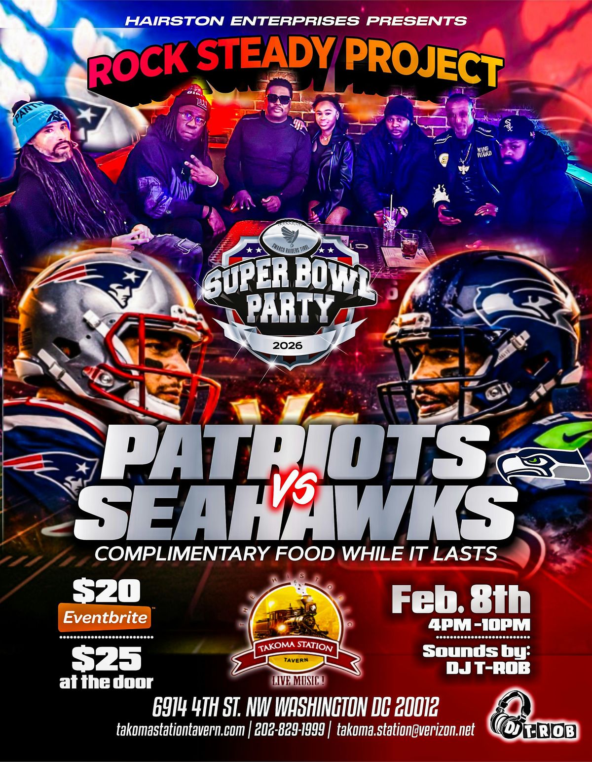 Welcome to the Super Bowl Watch Party 2026: Patriots vs Seahawks! Join us at Takoma Station Tavern on February 8, 2026 at 4:00 PM (Eastern Time) to cheer for your favorite team. Get ready for a night of thrilling touchdowns, delicious food, drinks, and great company. Don't miss out on the excitement as we watch the game live on the big screens. It's going to be an unforgettable evening, so grab your friends and come on down! Let's make this Super Bowl Sunday one to remember!
