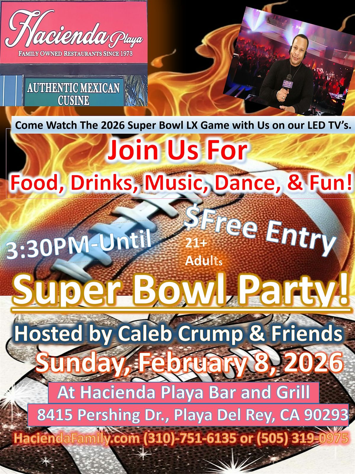 Super Bowl Watch Party at Hacienda Playa Bar & Grill Hosted by Caleb Crump