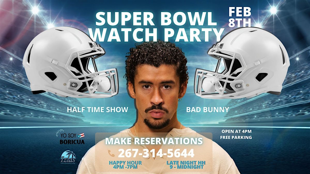 Come watch the Super Bowl with us. While enjoying a Puerto Rican Vibe for the Bad Bunny Half time show you don't want to miss