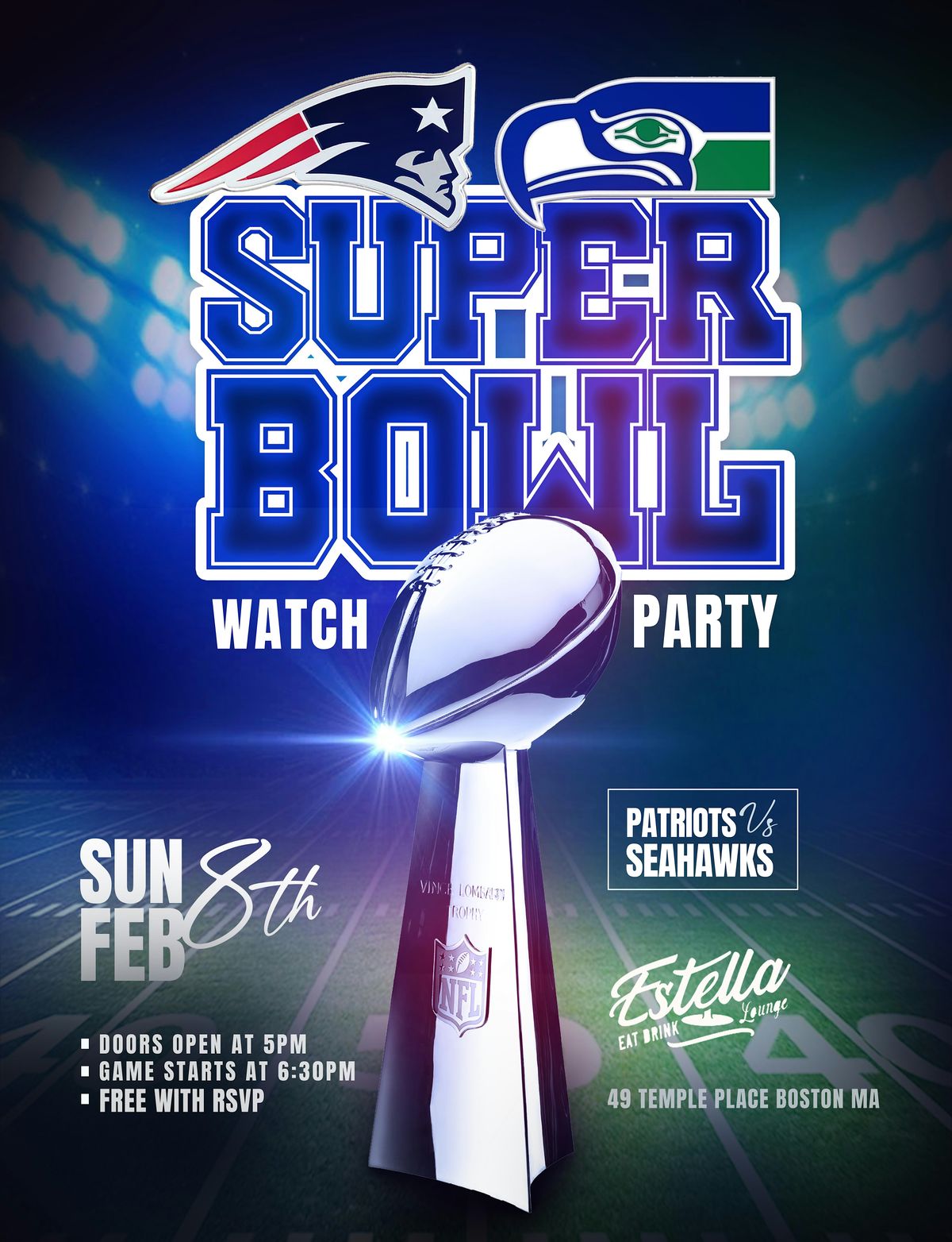 Join us for the ultimate Super Bowl Watch Party at Estella Eat • Drink • Lounge and experience the game like never before.