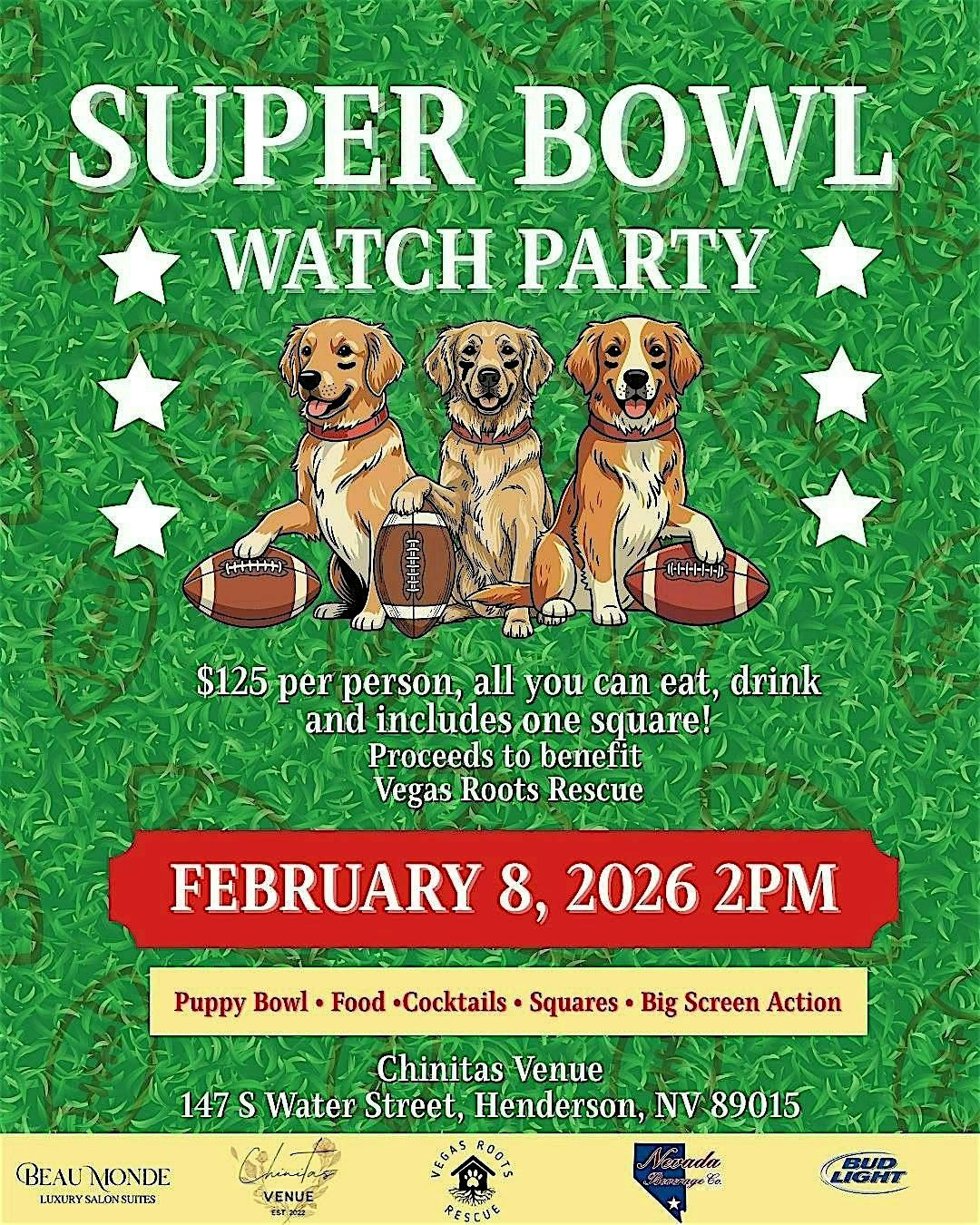 Join us for the Super Bowl Watch Party for the Pups happening at Chinitas Tapas & Sushi! Get ready to enjoy the big game on February 8th doors open at 2:00 PM.