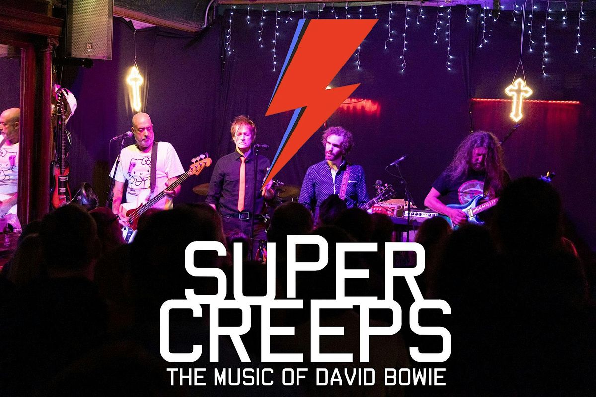 Using the entire Bowie catalog, and spanning all eras, all personas, and all incarnations, Super Creeps now has amassed an impressive song list with over three hours of Bowie material to choose from, and are ready to steamroll you with the raw power, musical dexterity, and vocal prowess of Bowie through the decades.