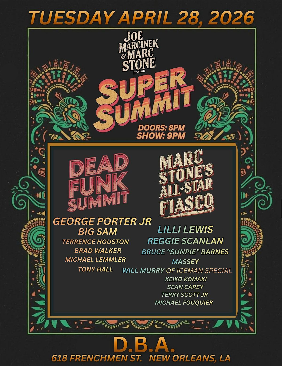 Super Summit lands at DBA for a one-night, all-star funk experience you don’t want to miss.Presented by Joe Marcinek & Marc Stone, this ele