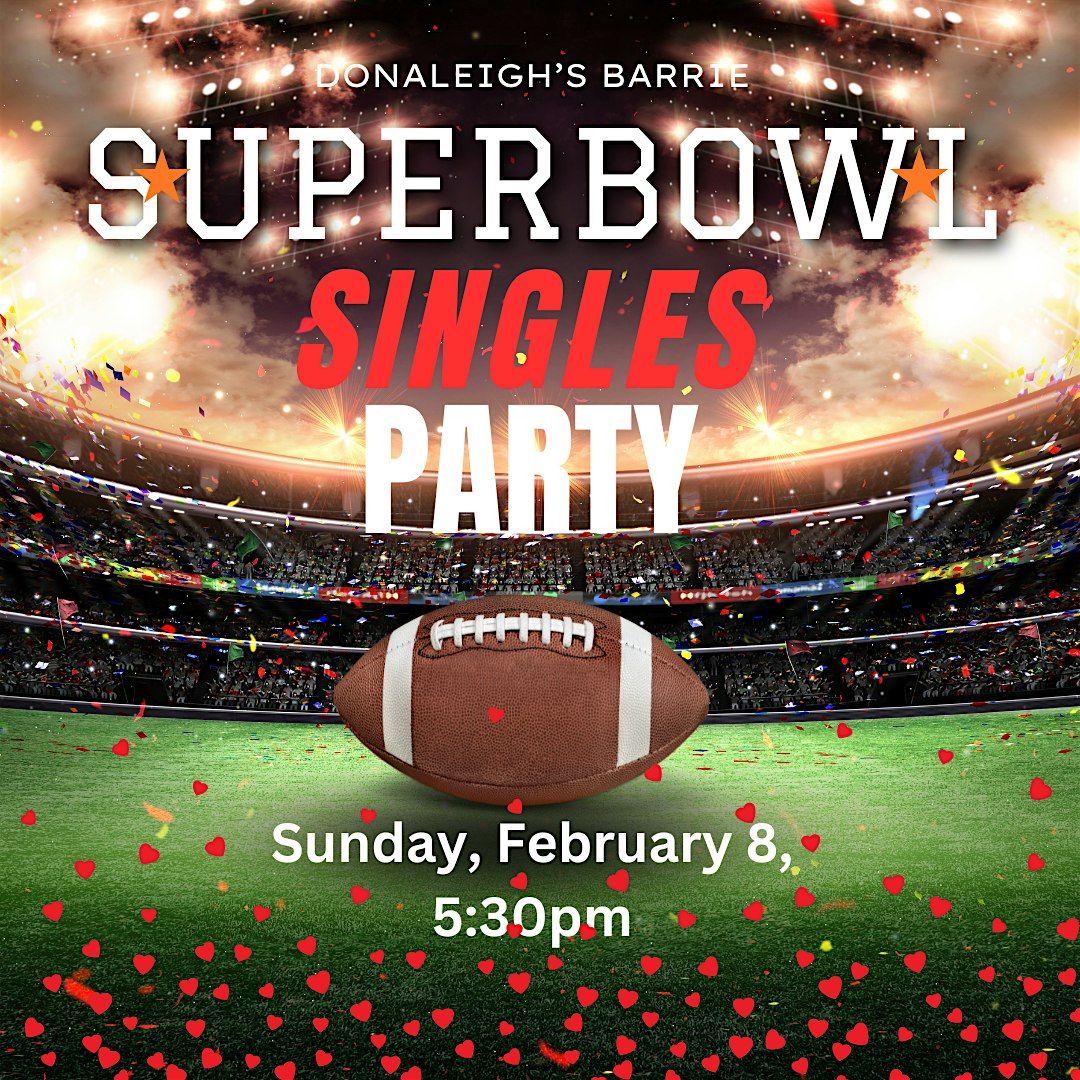 Calling all singles in Barrie! Come and watch the Superbowl with us at Donaleigh's while meeting other eligible singles.