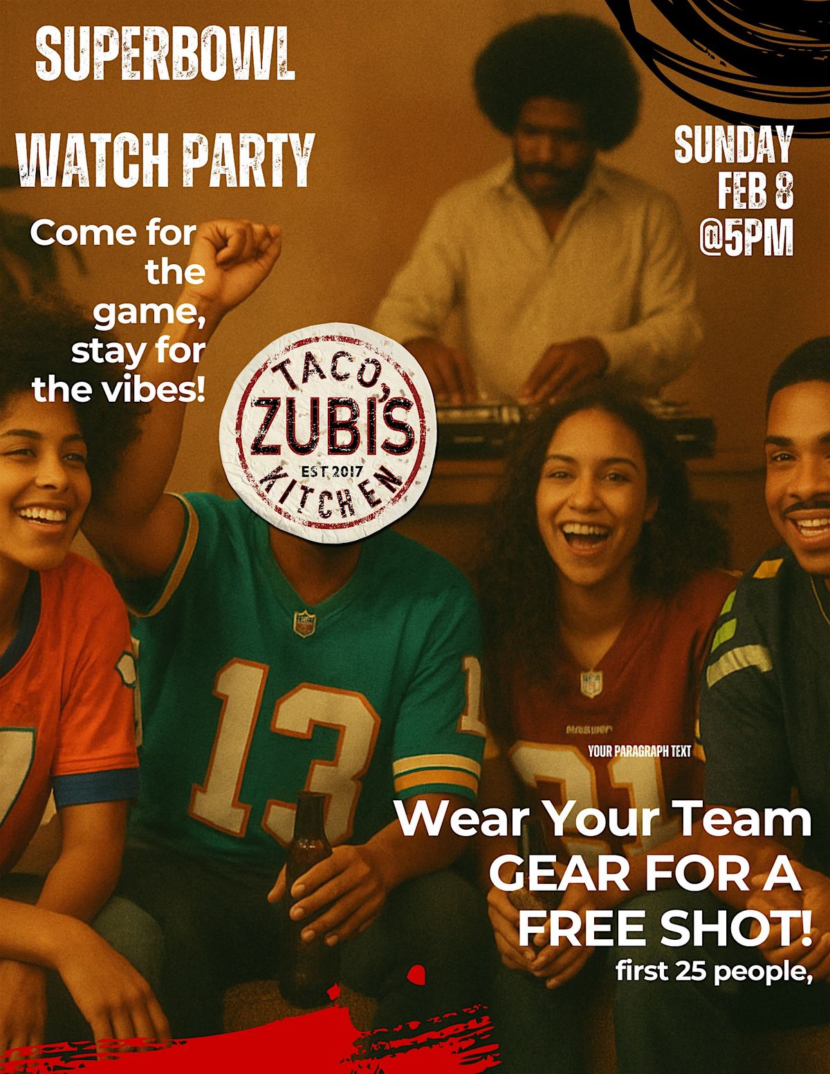Superbowl Watch Party- WIng & Tacos, Rock your team gear for Free Shot( first 25). Drink Specials, Multiple Screens, Loud Cheers. DJ BIG TED