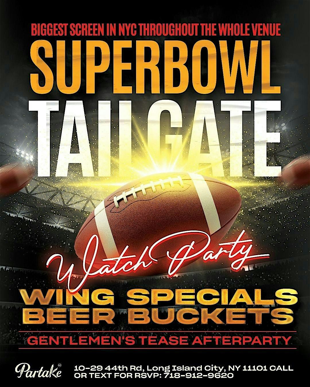 #SuperBowlWatchParty #NYCSuperBowl #BigGameNYC #PartakeNYC #BadBunny #HalftimeShow #TailgateVibes #LICNightlife #GameDayEnergy #AfterPartyVibes