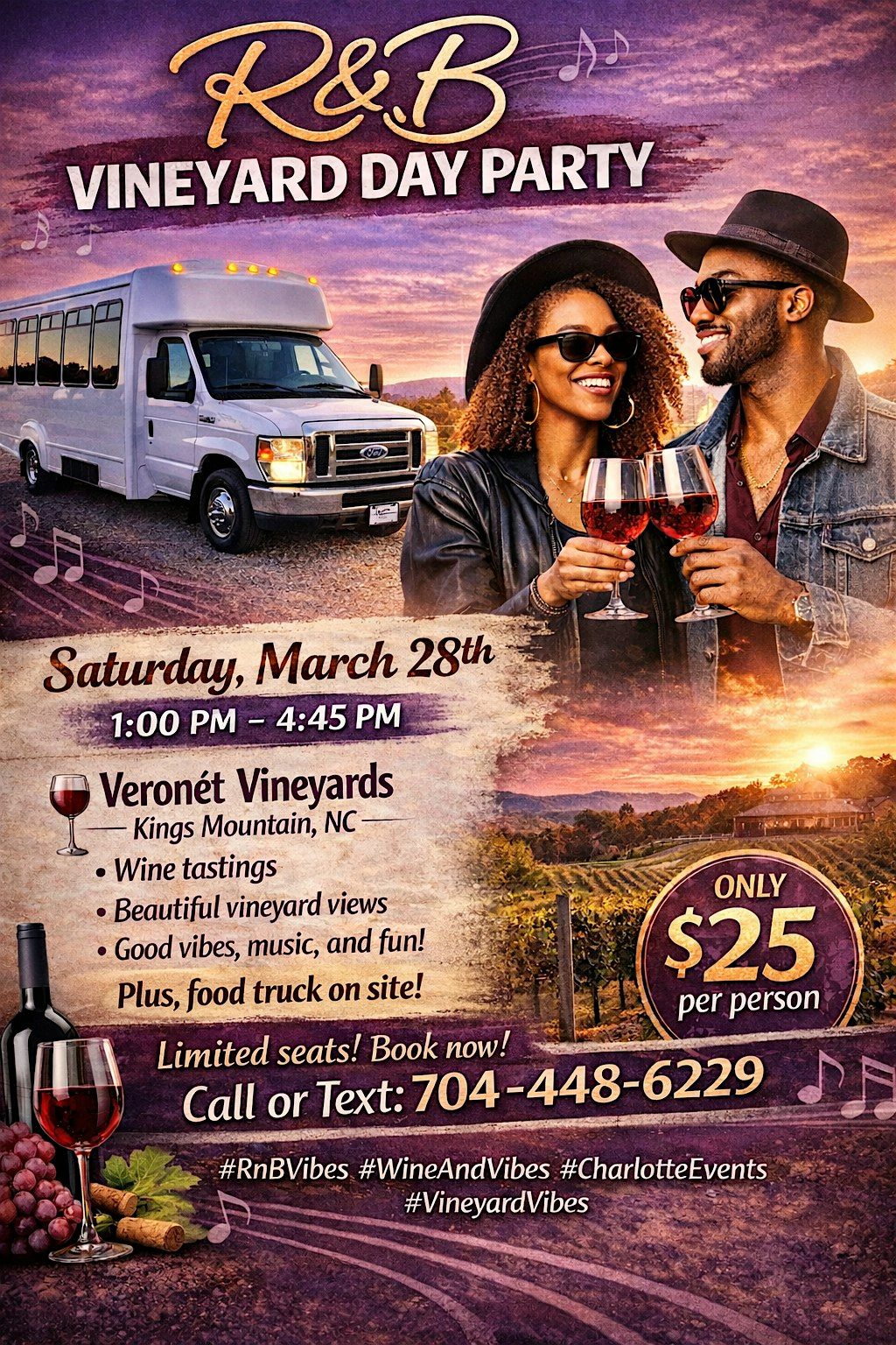 Get ready for an unforgettable evening in person where smooth R&B vibes meet exquisite wines. Enjoy great tunes, fantastic company, and of course, some top-notch wine selections. It's the perfect chance to relax, sip, and vibe all night long. Whether you're a wine newbie or a seasoned sipper, this event is tailored for you. Bring your friends and make some memories!