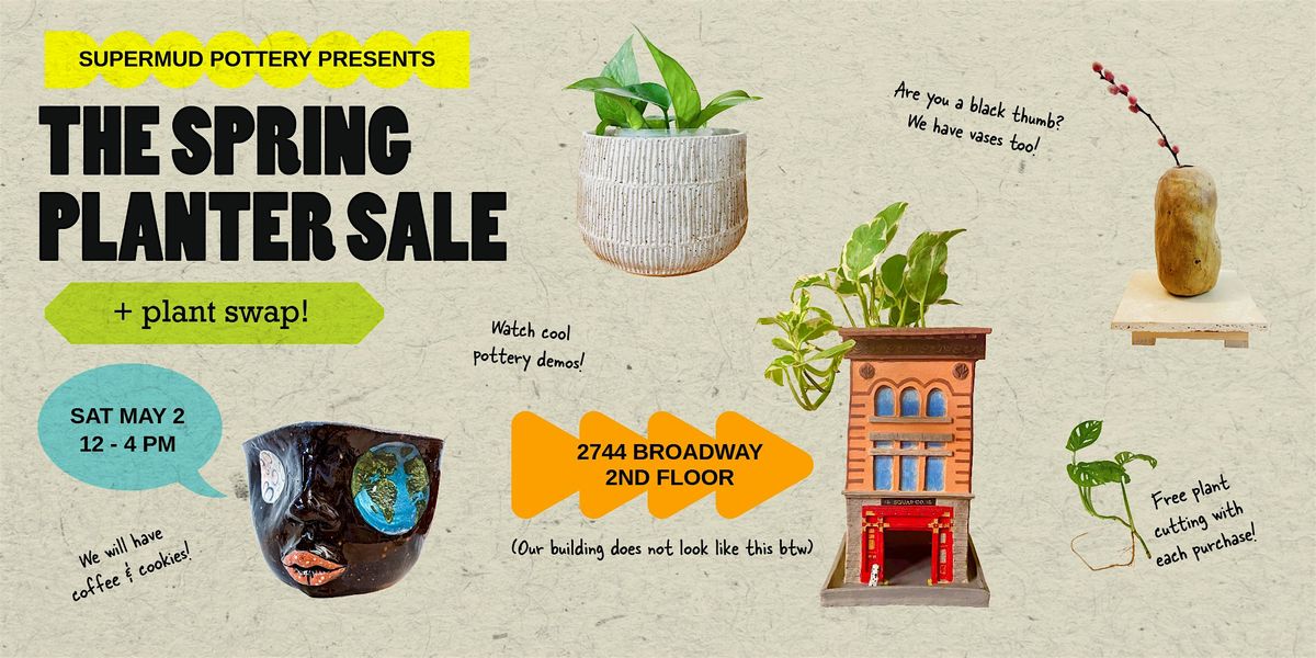 Jump into spring with the Supermud Spring Planter Sale & Plant Swap! Join us at Supermud Pottery for a day filled with beautiful handmade planters and a chance to swap plants with fellow gardening enthusiasts. Whether you're looking to add some greenery to your home, find the perfect Mother's Day gift, or trade your extra plants for something new, this event is perfect for all plant lovers.