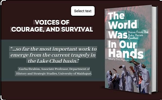 - Chitra Nagarajan will introduce her new book on Boko Haram, The World was in our Hands.
