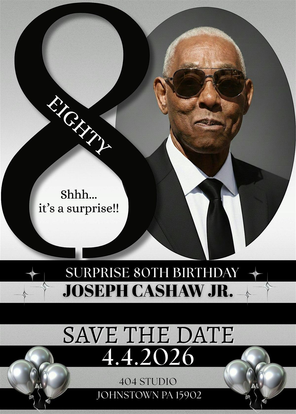 Hey there! We're throwing a fun surprise party for Joseph C Cashaw Jr. and you’re invited! It’s an in-person get-together filled with laughter, good vibes, and awesome company. Don’t miss out on celebrating this special moment with us. Come ready to have a blast and keep it a secret—shh, it’s a surprise! 🎉