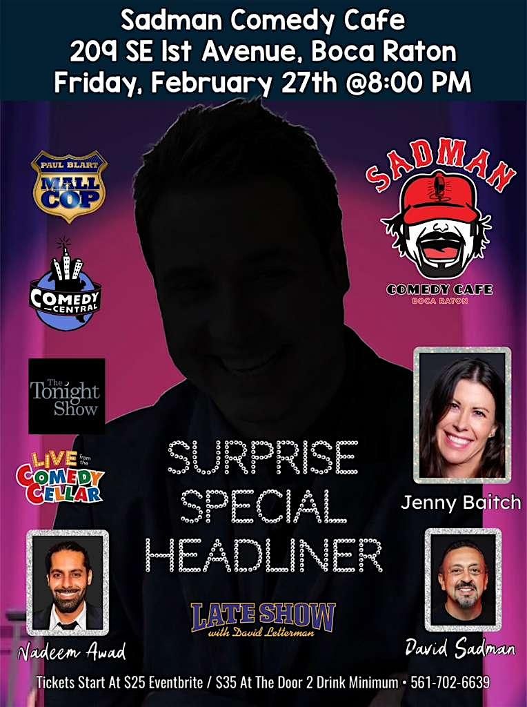 Surprise Special Headliner at Sadman Comedy Cafe, Boca Raton, Friday