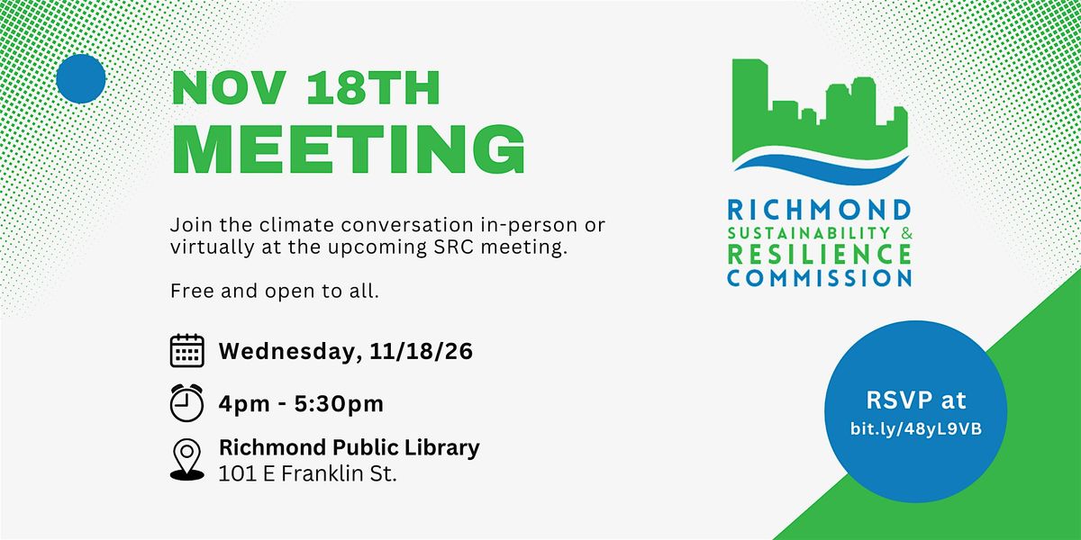 The (“SRC”) is a 10-member public commission tasked with advancing climate action in Richmond. The SRC collaborates with the Richmond Office of Sustainability to implement the RVAgreen 2050 Climate Equity Action Plan.