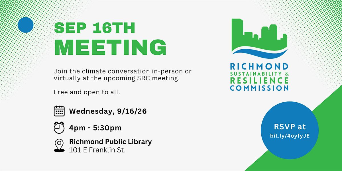 The (“SRC”) is a 10-member public commission tasked with advancing climate action in Richmond. The SRC collaborates with the Richmond Office of Sustainability to implement the RVAgreen 2050 Climate Equity Action Plan.