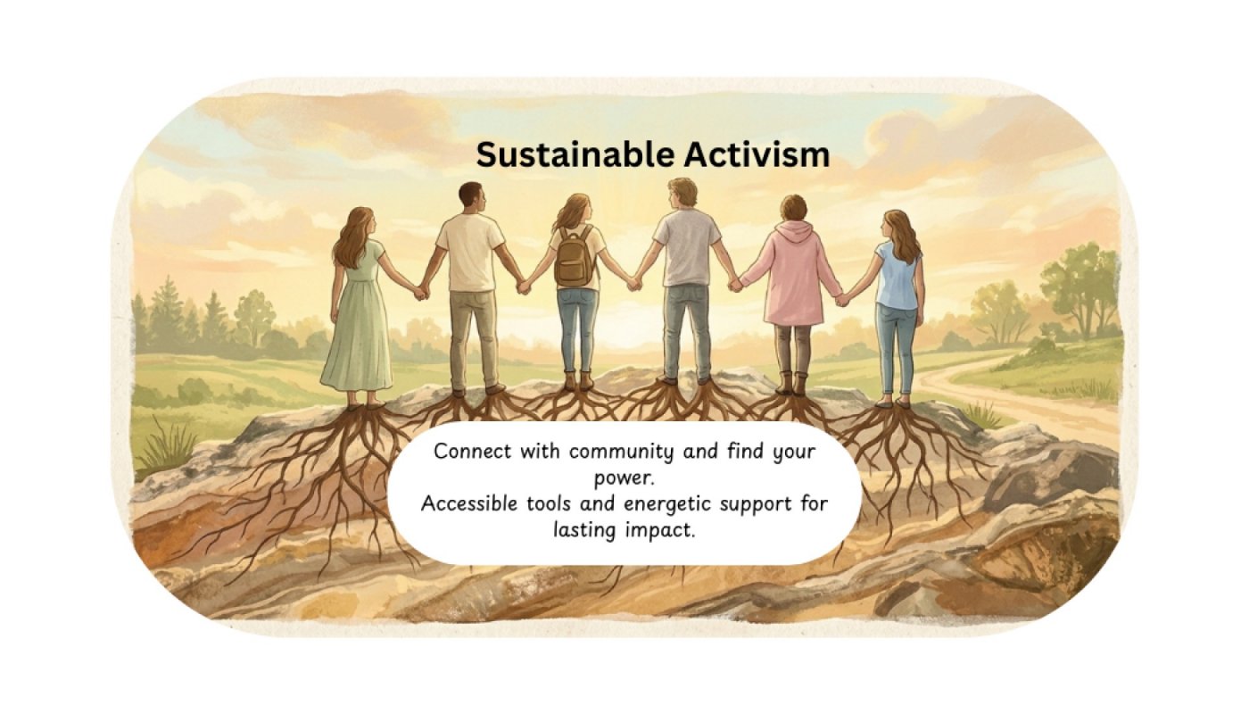 • Energy & Community: We will open with a guided grounding practice and sound healing to clear the "activist's heart." Learn energy-clearing techniques and how to set boundaries as an empath so you can hold space for others without absorbing their stress.