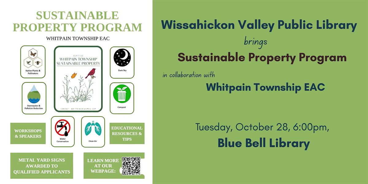 If so Join us to learn more about Whiptain Environmental Advisory Council's Sustainable Property Program. You'll hear an overview of the program, watch a panel discussion of Whitpain residents who have joined the program, and get a chance to ask EAC members and program neighbors any questions you might have.