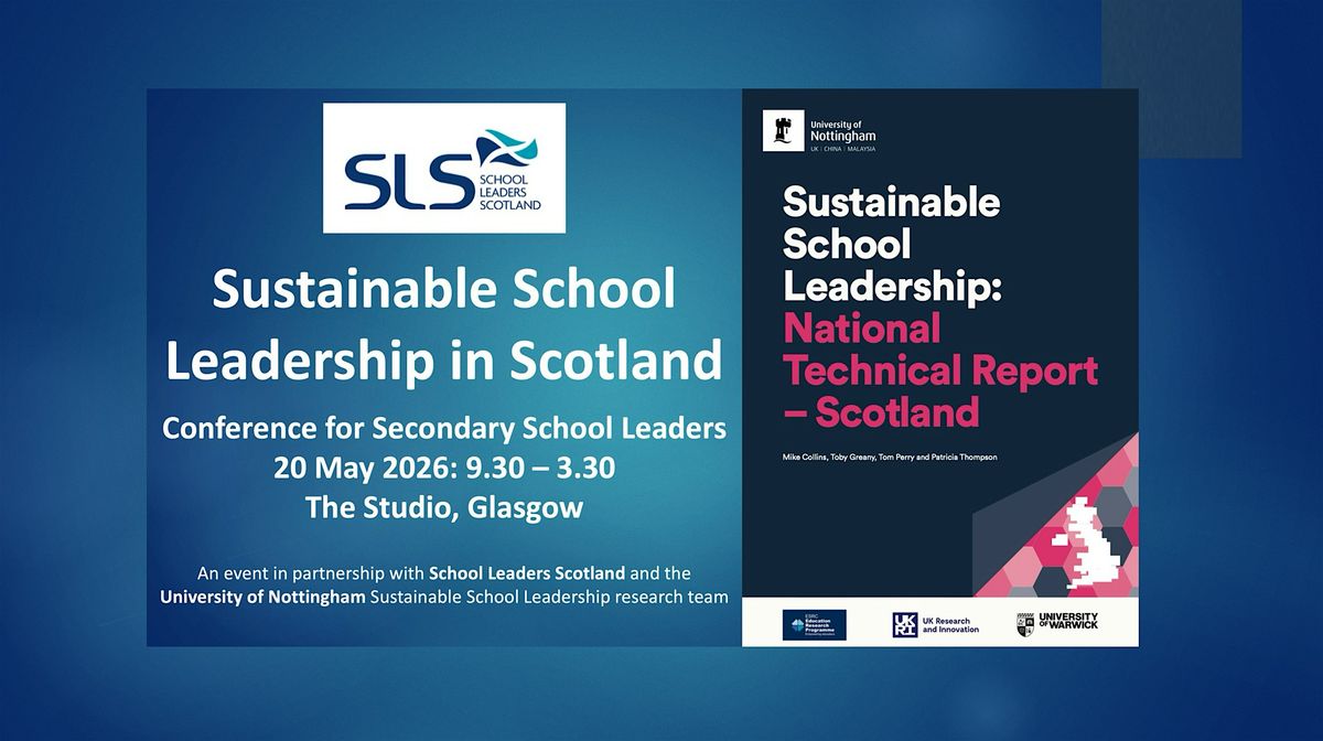 We are delighted to invite you to a full-day conference dedicated to Sustainable School Leadership in Scotland’s secondary schools. This event brings together School Leaders from across Scotland and is delivered in partnership with School Leaders Scotland and the Sustainable School Leadership research team at the University of Nottingham.