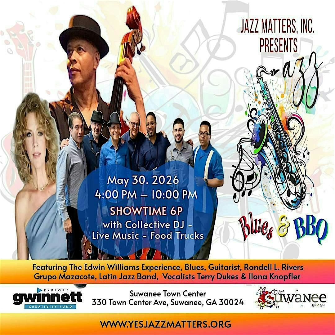 Join us for a night of dancing and delicious food at Jazz, Blues & BBQ summer concert on Saturday, May 30, 2026! Head over to Suwanee Town Center for an evening filled with incredible jazz and blues, mouthwatering BBQ, food trucks galore, fun zones for kids, and great company.