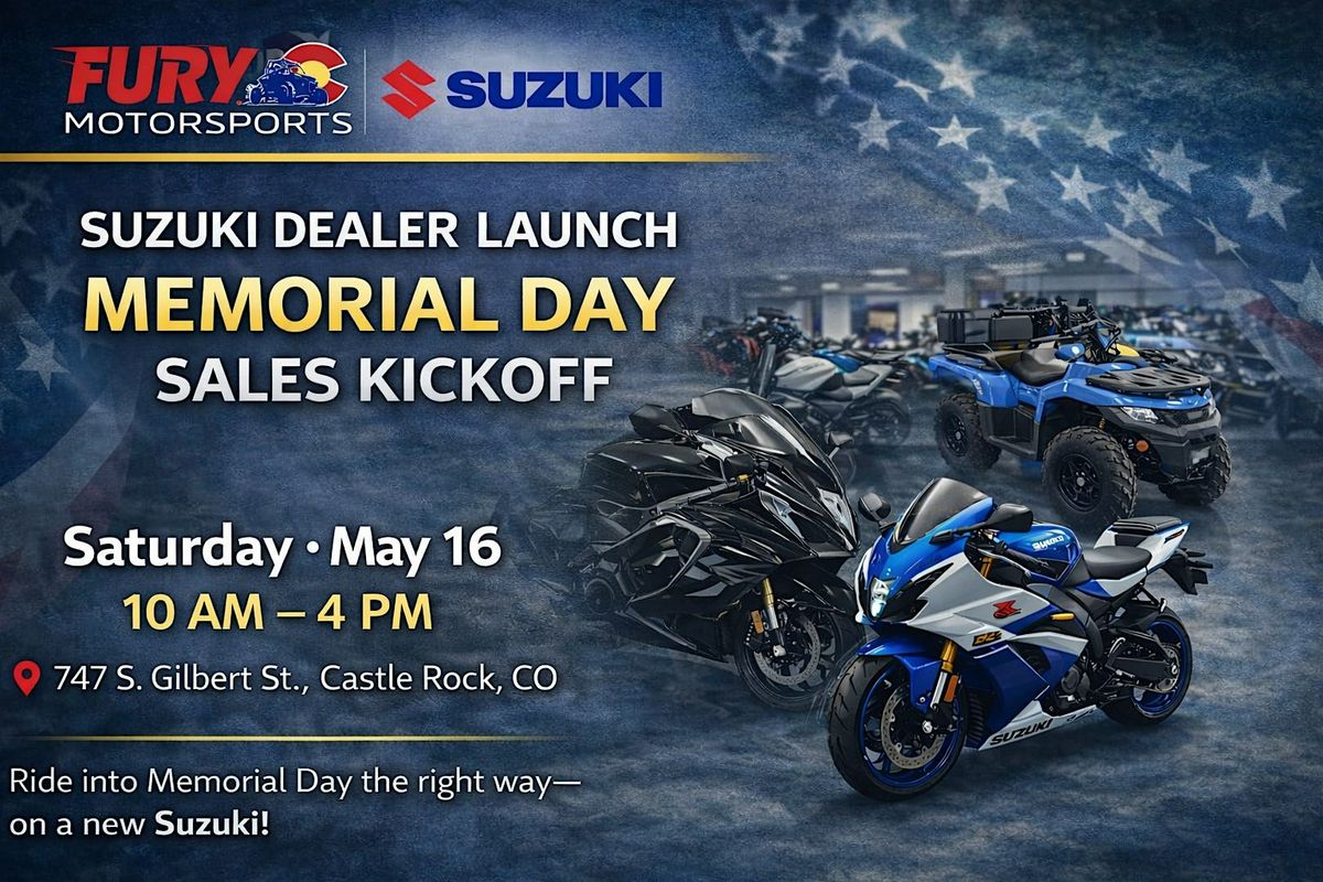 Join us at Fury Motorsports in Castle Rock, Colorado for our Suzuki Dealer Launch Event and Memorial Day Sales Kickoff, a community event celebrating motorcycles, ATVs, and the start of riding season in Colorado.