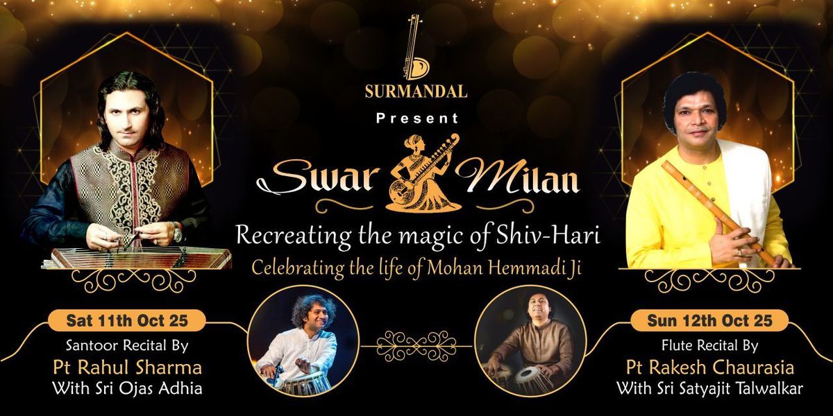 Swar Milan is a two-day festival being organised by Surmandal. Swar Milan is recreating the magic of the Legendary Pandit Shiv Kumar Sharma and Pandit Hariprasad Chaurasia. The duo was famously known as “Shiv-Hari” and has performed numerous concerts globally, as well as composed music for many films. Swar Milan is being organised to celebrate the 90th year of its founding President, Shri Mohan Hemmadi Ji, who was the pioneer in promoting Indian Classical Music and Dance not just in India but globally as well.