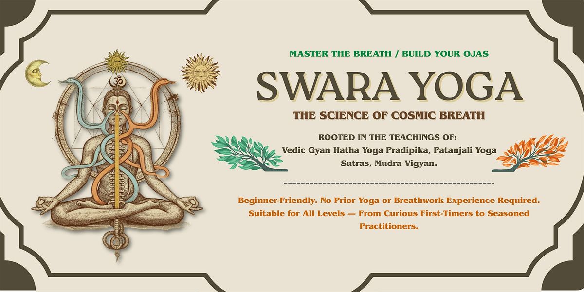 This in-person Swara Yoga and pranayama seminar in London explores breath awareness, lunar and solar energy balance, and classical yogic wisdom. Beginner-friendly and suitable for all levels.