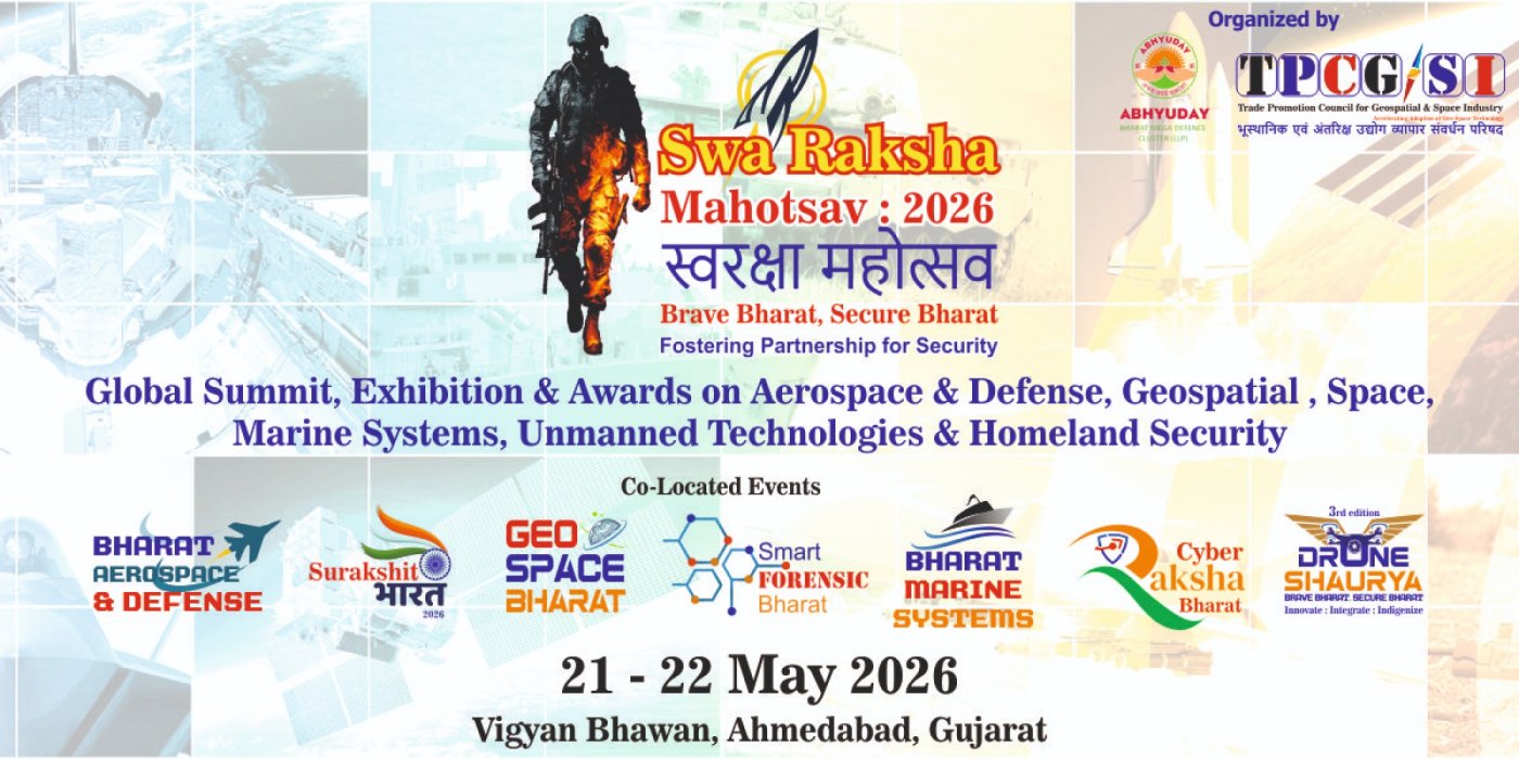 SwaRaksha Mahotsav 2026 is a premier global platform dedicated to fostering innovation, collaboration, and technological advancement across the domains of Aerospace, Defence, Geospatial, Space, Marine Systems, Unmanned Technologies, and Homeland Security.