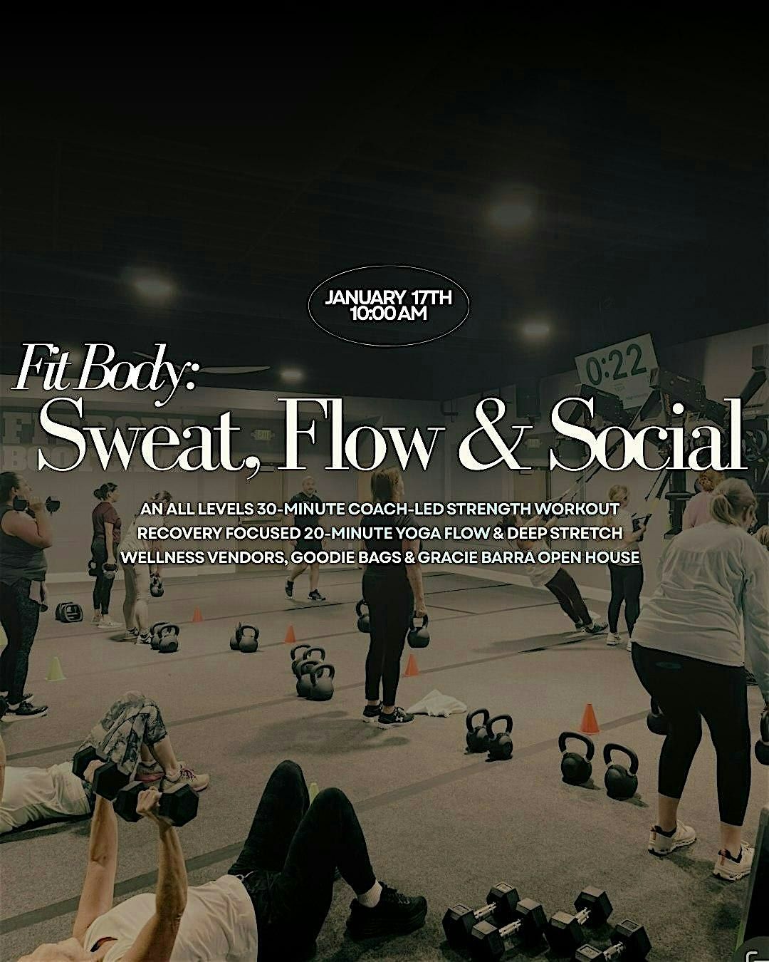 Join us for Fit Body: Sweat, Flow & Social, a community wellness event celebrating the grand opening of Carlsbad Fit Body Boot Camp in collaboration with Gracie Barra and Salt & Sun Social. This all-levels experience is designed to bring people together through movement, recovery, and connection.