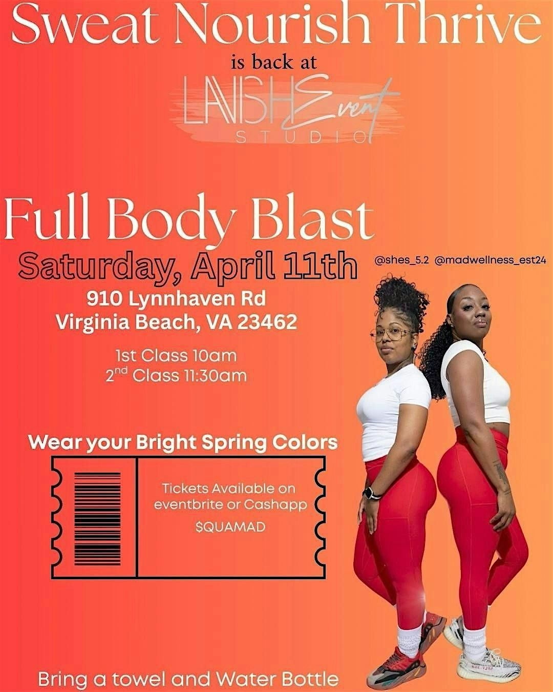 Join us at 910 S Lynnhaven Rd on April 11, 2026 at 10:00 AM or 11:30 AM(Eastern Time) for a day of wellness and self-care. Get ready to sweat it out, nourish your body, and thrive with our expert instructors. Don't miss this opportunity to prioritize your well-being and connect with like-minded individuals. Cant Wait to See you There!