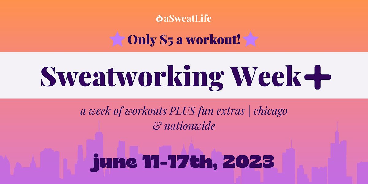 aSweatLife is hosting its signature event - Sweatworking Week, which is a celebration of trying new fitness classes and meeting new friends all across Chicago and nationwide - it’s like the restaurant week for fitness. The theme of this year’s Sweatworking week is Sweatworking week PLUS! Fitness class plus something extra special at each event. PLUS in our signature style we will be perking you out with all the brand goodies. The summer celebration of fitness, friendship and fun you will not want to miss!