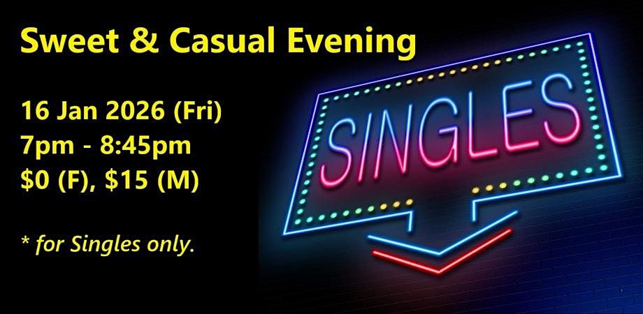 Sweet & Casual Evening (Fri, 16 Jan). singles social event.