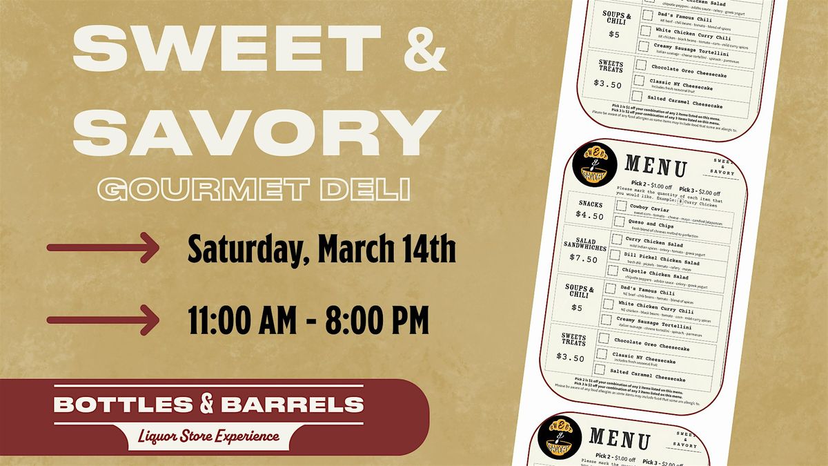 Sweet & Savory Gourmet Deli will be at Bottles & Barrels all day!