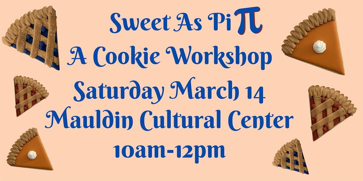 Celebrate Pi Day in the sweetest way! Join us on March 14, 2026 at 10:00 AM for a fun cookie-making session! Held at the Mauldin Cultural Center, this workshop is perfect for anyone who loves baking or just wants to hang out and get creative with some sweet treats. This is an intermediate class. We will go over the basics of decorating, as well as learning a few piping techniques to bring your cookies to life! We will provide all the supplies: 12 cookies, icing, piping tips, etc... you just need to bring your creativity! Bring your friends or come solo—either way, it’s gonna be a blast!