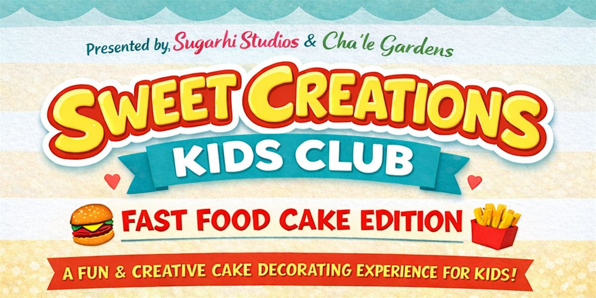 Sugarhi Studios and Cha’le Gardens are teaming up to bring kids a hands-on cake decorating experience where imagination turns cake into fun fast-food creations. Dive into a world of creativity and fun at our in-person Sweet Creations Kids Club, where kids decorate pre-made cakes into playful, fast-food-inspired treats while enjoying music, laughter, and sweet moments with new friends. This experience is all about creativity, confidence, and enjoying the fun side of decorating in a relaxed and exciting environment. Don’t miss out on the sweetest kids club in town!