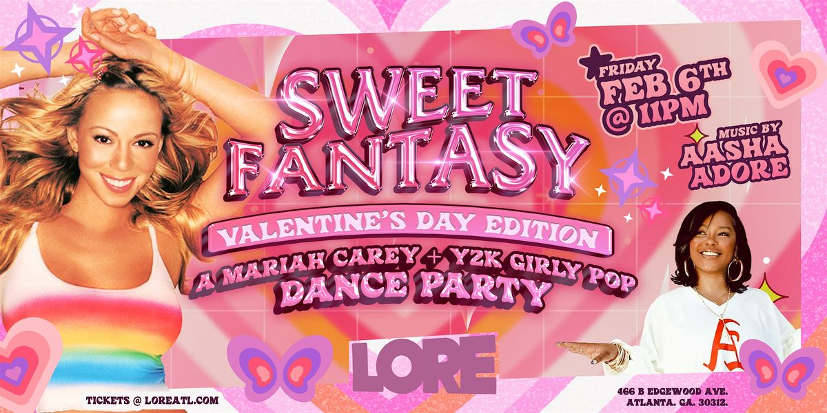 Join us Friday, Feb 6 at LORE for the return of SWEET FANTASY [Valentine's Edition] -- featuring all the hits of Mariah Carey + all your favorite 2000's girly pop beats!