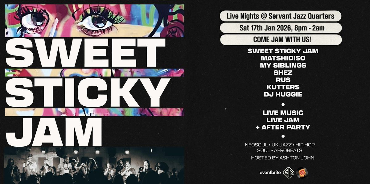 Having raised the roof at the Jago, Lower Third and Jazz Cafe, 2026 ushers in the new chapter on the Sweet Sticky Jam journey.. we gonna connect with sweet sounds, dance and pure upliftment to bring the light in to January! 💫 With DJ Huggie aka Turbo taking us on a musical odyssey all the way thru to the after party... Heads up: it will be a night to remember. SJQ may need to baton down the roof as it will be busting loose. IYKYK.