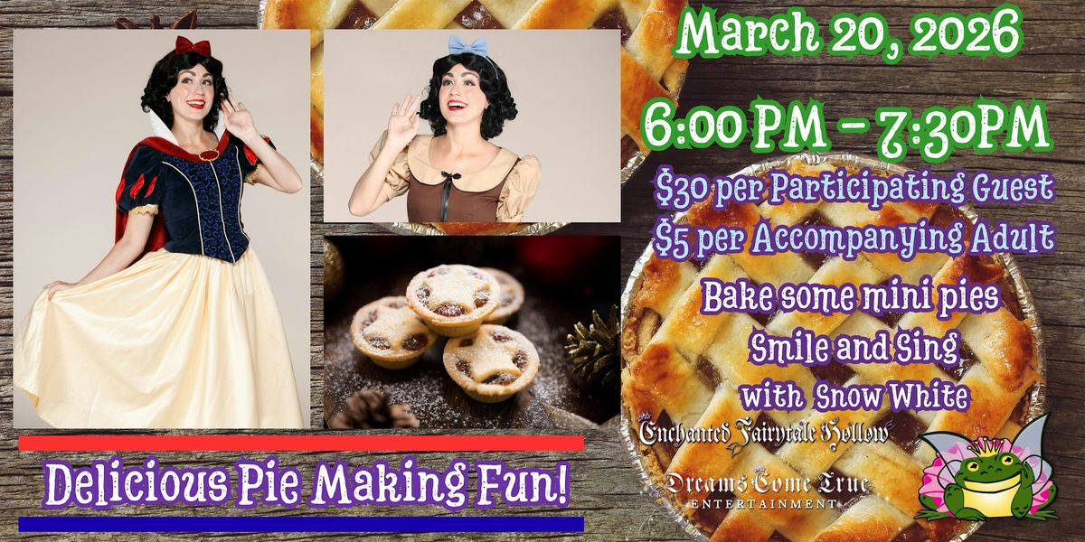 Come join Snow White for some delicious fun and delightfully sweet treats! Make your very own petite pasrty pies to take back to your kingdom, a Royal Sing and Dance Along full of lots of sweet smiles and big hugs and Meet and Greet for every royal guest with the very first princess.