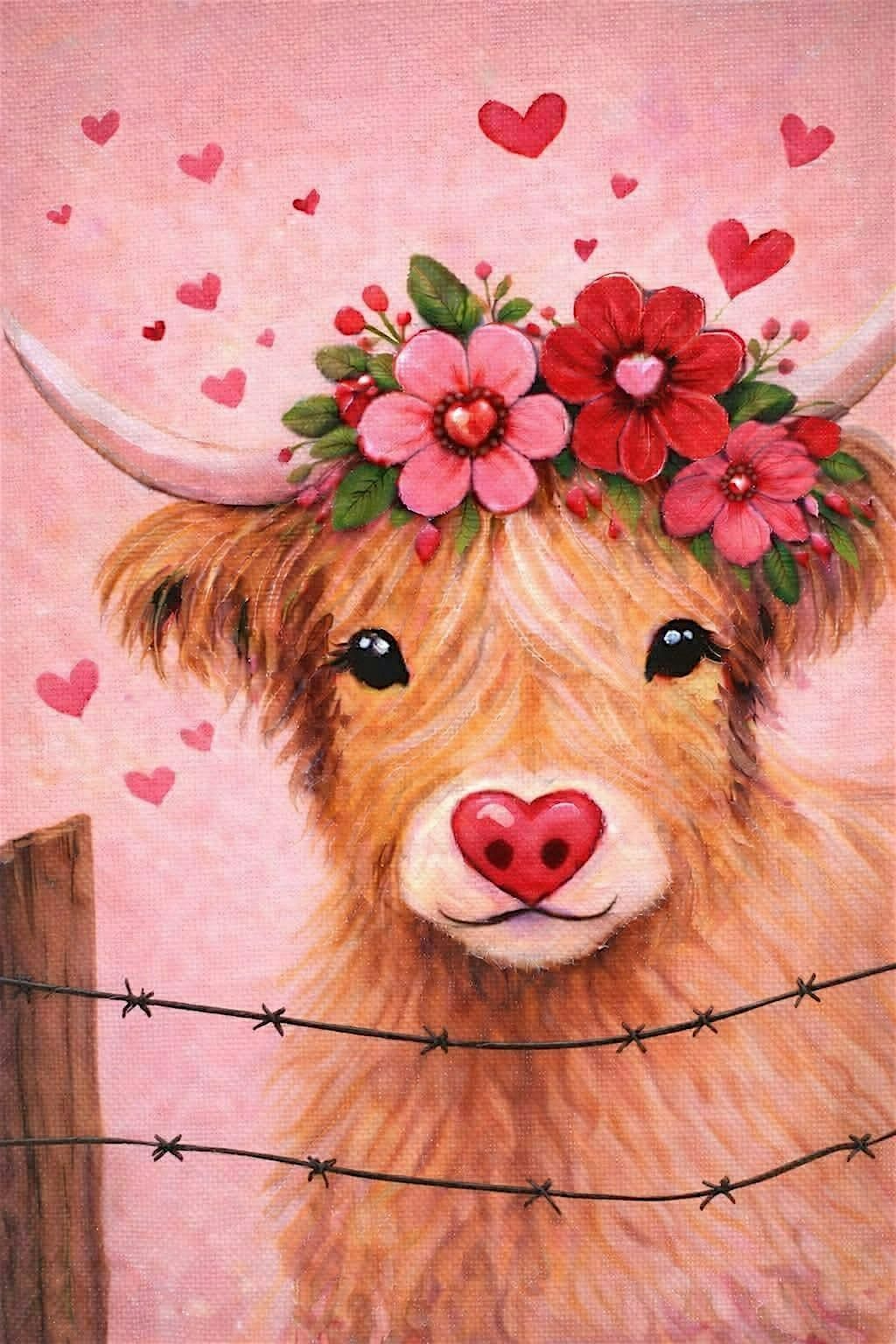Bring your favorite humans and spend Valentine's day painting our sweet little Miss Honey the Highlander! She will be pre-traced on your canvas, so you can relax and enjoy yourself and be creative with your colors. Class is set for 3 hours so you won't feel rushed!