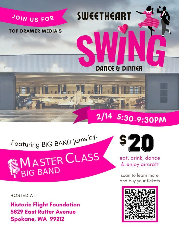 Enjoy great food, drinks, dancing and great music from MasterClass Big Band all in the Historic Flight Museum. $20.00 per person.
