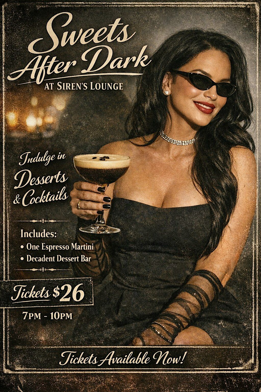Sweets After Dark at Siren’s Lounge is your invitation to indulge in a decadent, late-night dessert experience with cocktails and glamorous vibes.