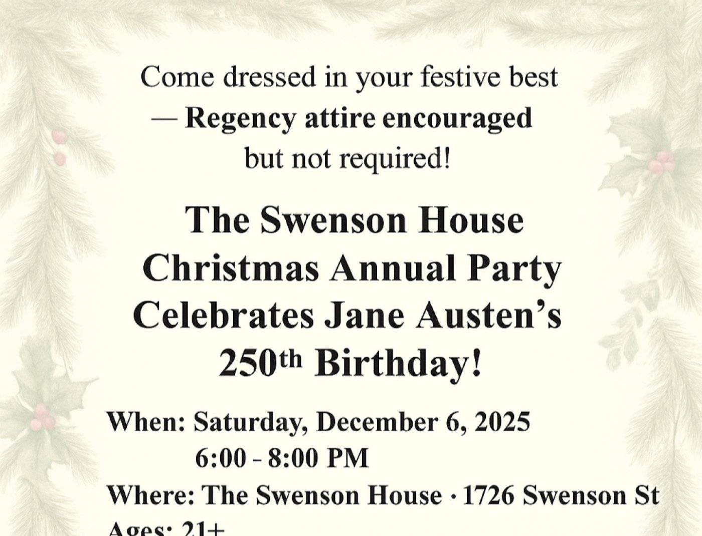 — Regency attire encouraged but not required!
