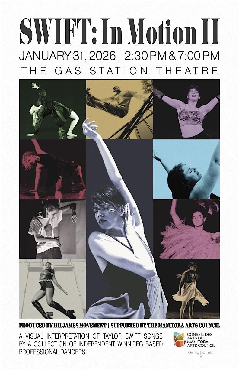 January 31st at 2:30pm and 7pm at the Gas Station Arts Centre (445 River Ave) in Winnipeg, MB, Canada. Mark your calendars and get ready to have fun at SWIFT: In Motion II! This event is not to be missed!
