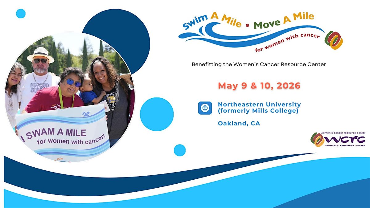 Swim A Mile | Move A Mile for Women with Cancer returns May 9–10, 2026 at Trefethen Aquatics Center in Oakland!