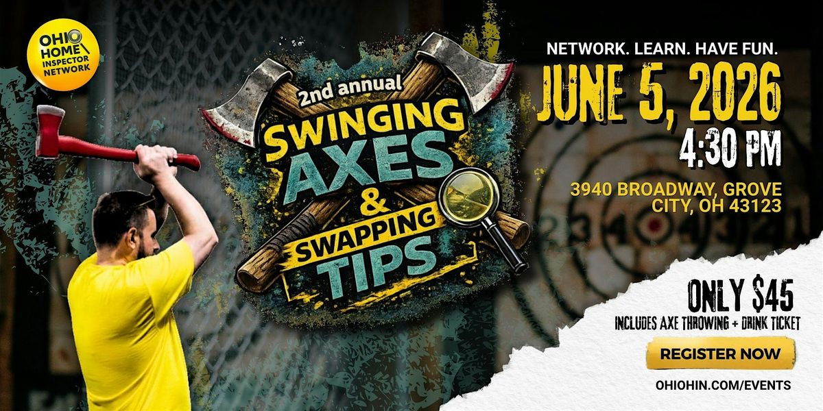 Join the Ohio Home Inspector Network for our 2nd Annual Swinging Axes & Swapping Tips—an exciting evening of networking, learning, and fun!